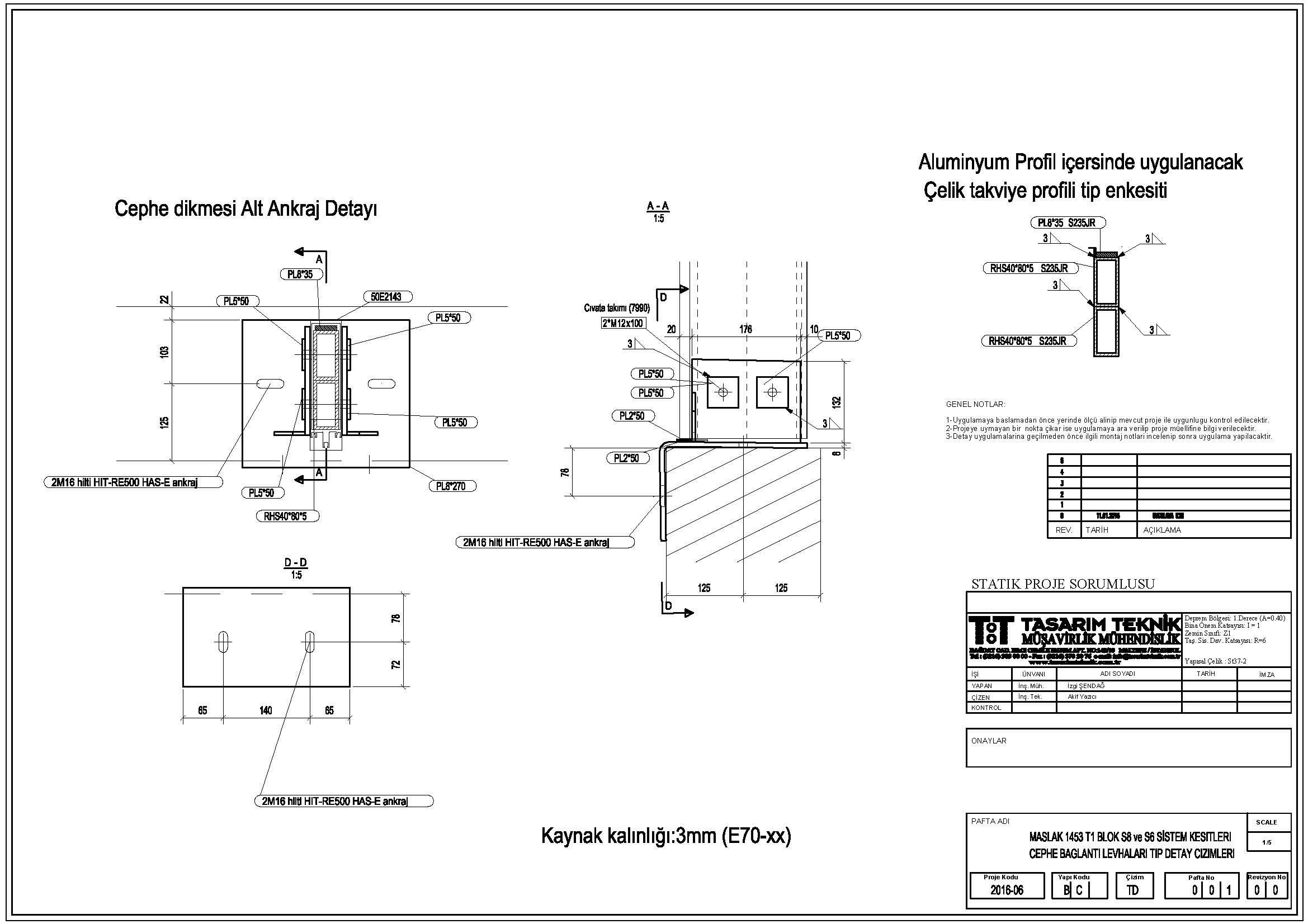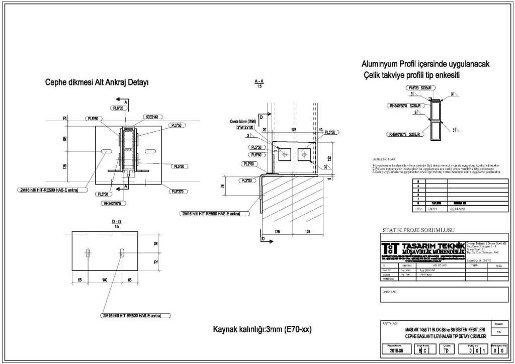 6.5m yüksekliğe sahip cephe profillerinin ve ankrajlarının tasarımlarının yapılması ve tip detay çizimlerinin hazırlanması.
