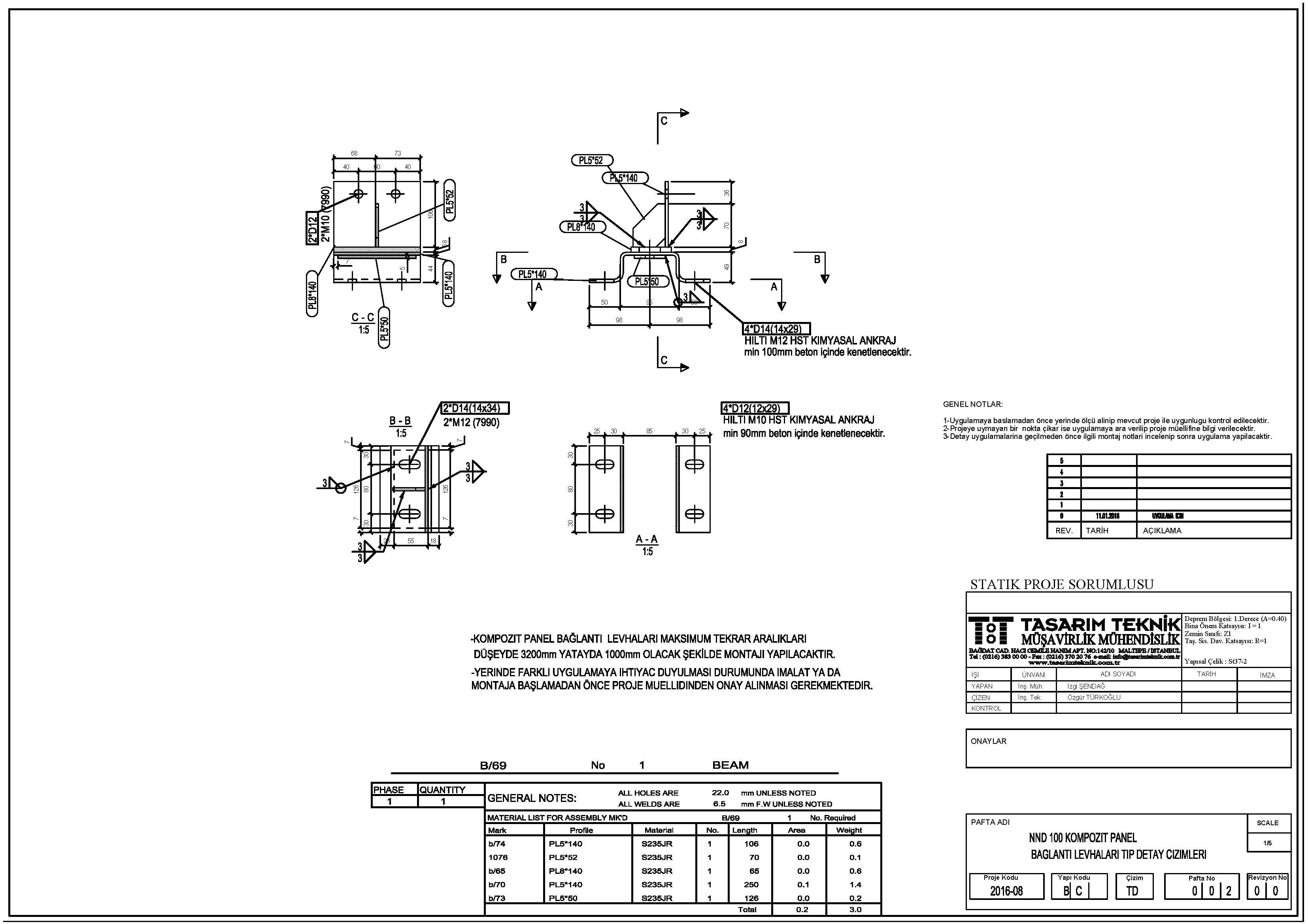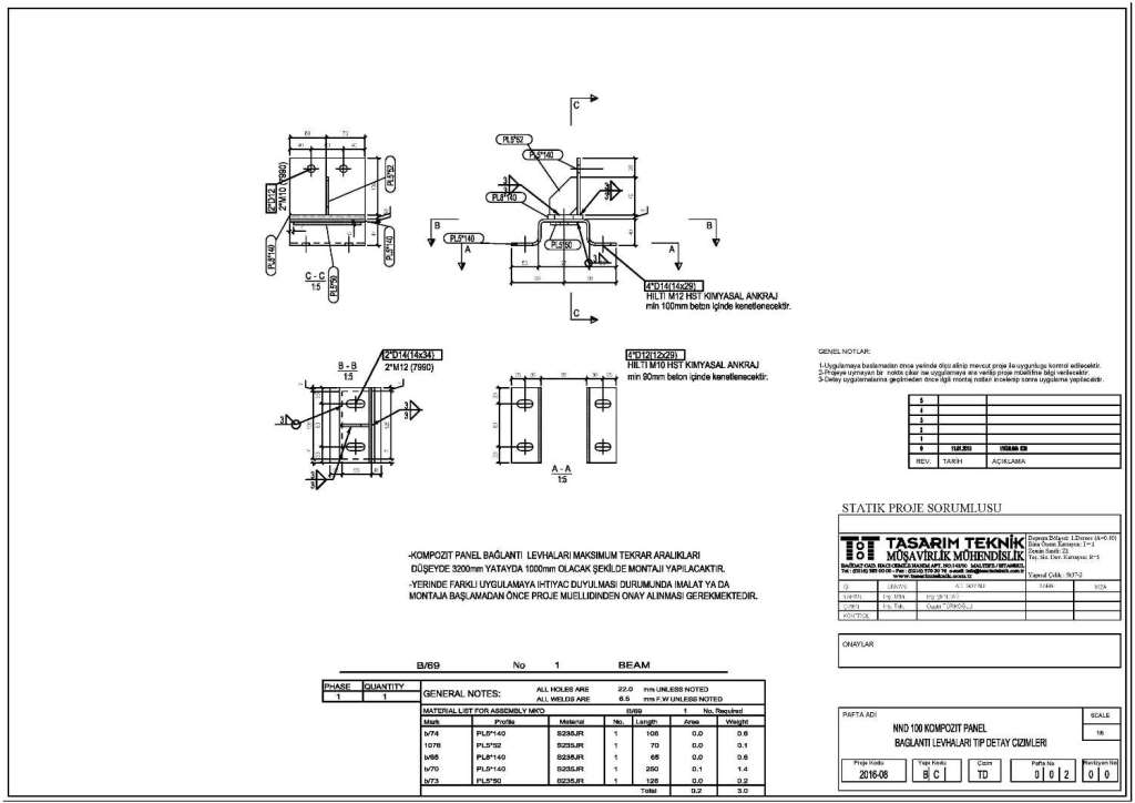bağlanacak kompozit panel taşıyıcılarının statik hesaplarının yapılması ve ankraj tip detaylarının oluşuturulması.